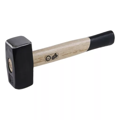 Fából készült pálca 1250g lakkozott ergonómikus fogantyúval. Kétoldalas kovácsolt fej, ferde élekkel. Kör alakú ék.