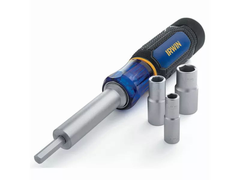 Az IRWIN® 6 az 1-ben csavarhúzó bithegy tartó növeli a munka kényelmét azáltal, hogy 6 méretet kombinál az anyák és csavarok egyetlen szerszámmal történő rögzítéséhez.