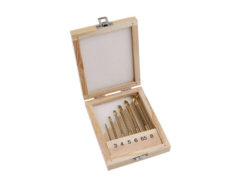 Fräsbohrer-Set 6-teilig (3,0-4,0-5,0-6,0-6,5-8,0 mm) HSS TiT