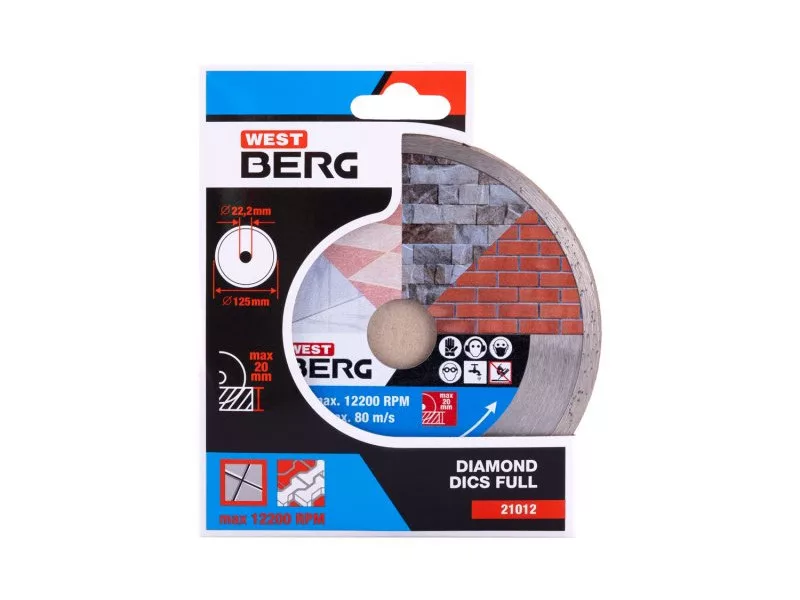 Gyémánt tárcsa DIAMANT, kivitel: FULL - minden körben kiváló minőségű gyémántréteg magas gyémántpor tartalommal, precíz megmunkálás - csatlakozás a tárcsa tartótárcsájához magas hőmérsékletnek ellenáll, felhasználás: nedves és száraz vágáshoz burkolat és burkolás, beton, tégla, falazat, gránit, márvány, kő, üveg, kerámia, csomagolás: eurólyukkal ellátott buborékfólia, mellékelt szűkítő gyűrű 22,2-20 mm, méretek: a termék megnevezésében feltüntetve.