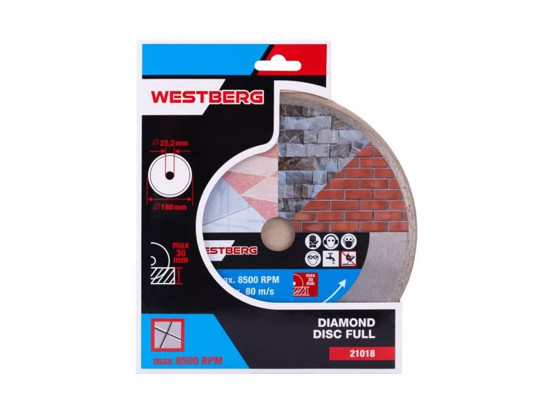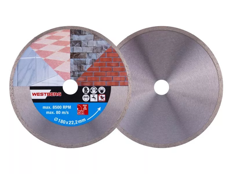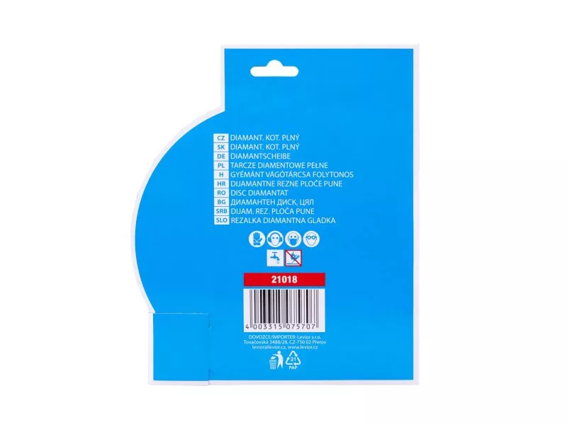Gyémánt tárcsa DIAMANT, kivitel: FULL - minden körben kiváló minőségű gyémántréteg magas gyémántpor tartalommal, precíz megmunkálás - csatlakozás a tárcsa tartótárcsájához magas hőmérsékletnek ellenáll, felhasználás: nedves és száraz vágáshoz burkolat és burkolás, beton, tégla, falazat, gránit, márvány, kő, üveg, kerámia, csomagolás: eurólyukkal ellátott buborékfólia, mellékelt szűkítő gyűrű 22,2-20 mm, méretek: a termék megnevezésében feltüntetve.