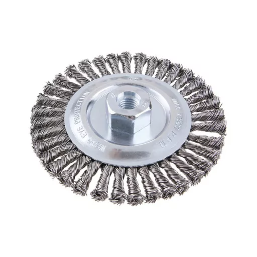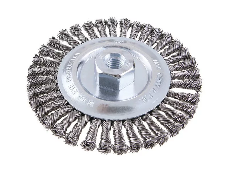 Forgókefe - radiális, kivitel: COPY - szabadalmaztatott huzal 0,5 mm - másolás, extrém terhelés mellett sem bomlik ki, a FESTA kefék garantálják a kiváló minőségű felhasznált anyagokat és feldolgozást, átmérő 125 mm Menet M14x2mm Horganyzott kefetest Huzalok száma: 1584, Drót hossz: 27mm max. megengedett sebesség: 10000 1/min Alkalmazás: festék, rozsda, sorja, hegesztési maradványok, salak eltávolítása, érdesítés, fém tisztítása