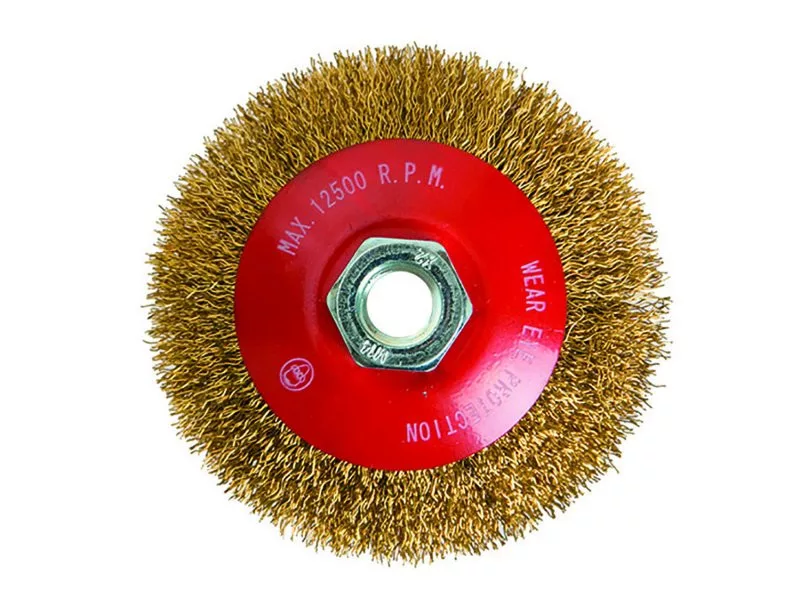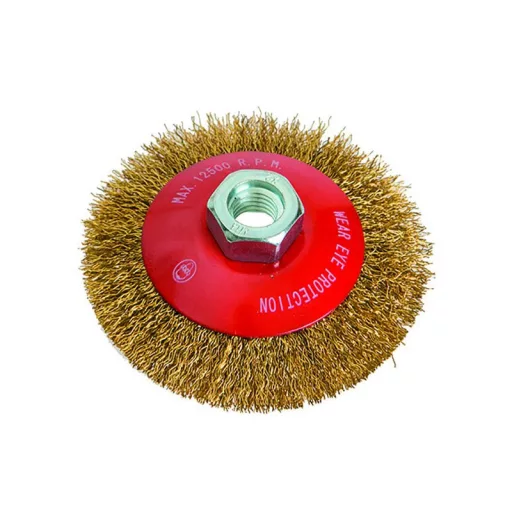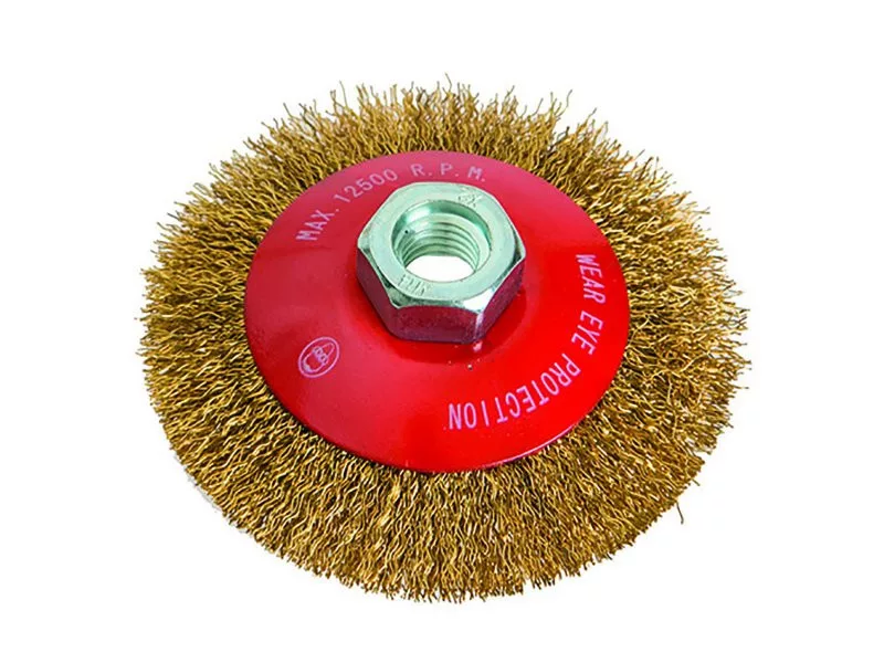 Tálkefe sárgaréz hullámos huzalokkal, M14-es rögzítéssel, tál, rozsdamentes anyagokhoz.