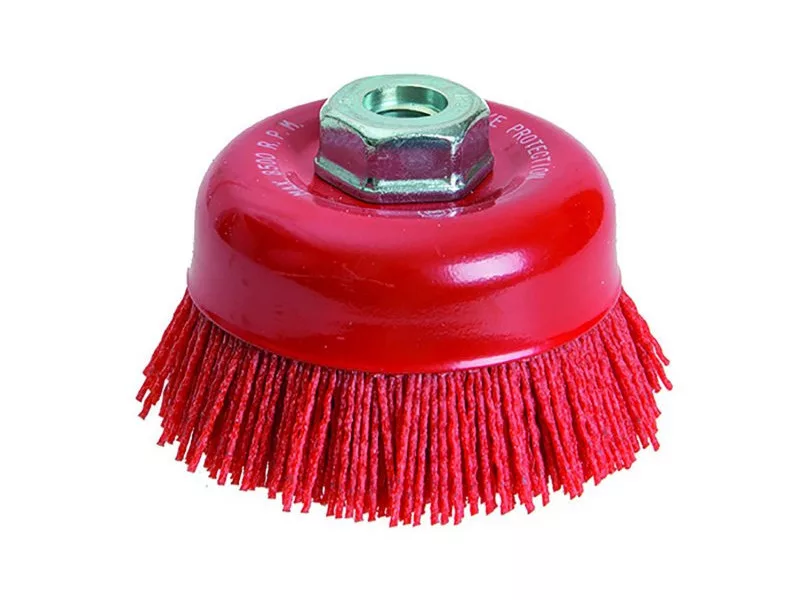 Pohárkefe nylon hullámos szálakkal, M14-es rögzítéssel, tállal, alkalmas festékeltávolításra, polírozásra és famegmunkálásra...