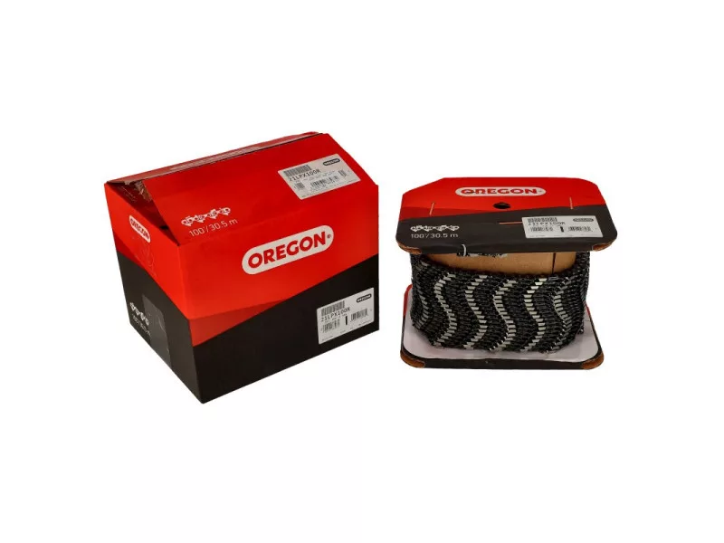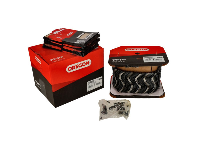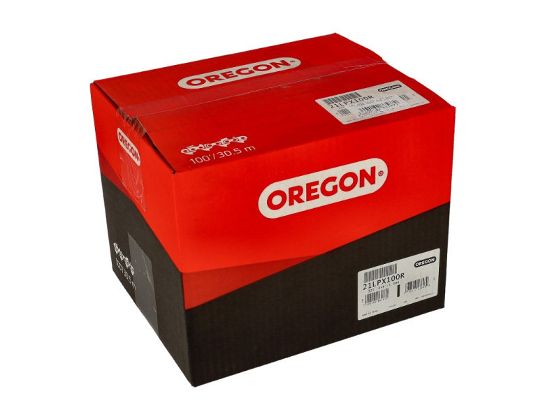 Oregon gyártmányú fűrészlánc, 100 lábas tekercsben.