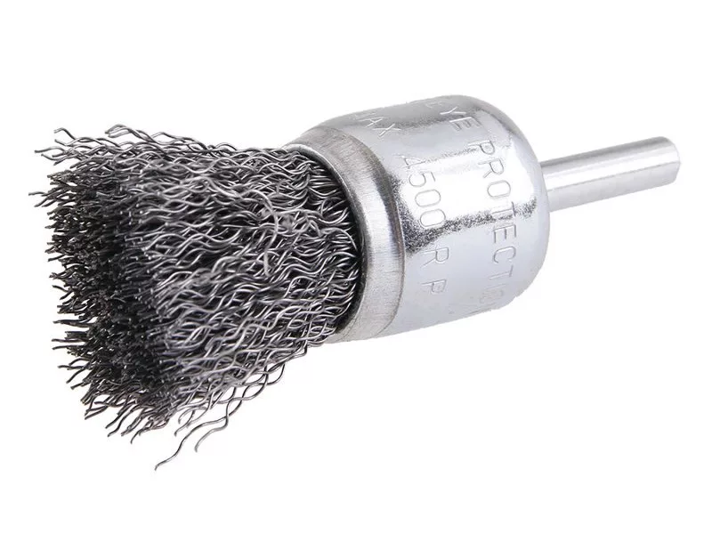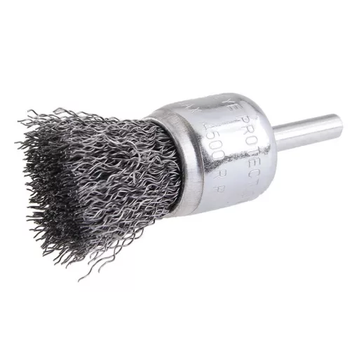 Forgókefe - hullámos, FESTA kefék garantálják a kiváló anyagokat és megmunkálást, huzal 0,3 mm átmérő 25 mm, szár 6 x 20 mm, horganyzott kefetest, huzalok száma: 150, huzalhossz: 20 mm, megengedett fordulatszám: 4500 1 /perc, felhasználás: könnyű csiszolási munka és tisztítás nehezen hozzáférhető helyeken, csomagolás: eurólyukkal ellátott buborékfólia.