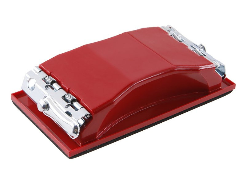 Csiszolópapír tartó, anyaga: műanyag - fém - gumi, ergonomikus forma a könnyű fogásért és munkavégzésért, a kiváló minőségű rugós zárak könnyű cserét és papír, tányérok vagy csiszolórácsok megfelelő megtartását teszik lehetővé, a gumiréteg biztosítja a jó alkalmazkodást a csiszolt felülethez, használat: csiszolópapír tartó, kendők, csiszoló rácsok,..., méretek: a termék megnevezésében szerepel.