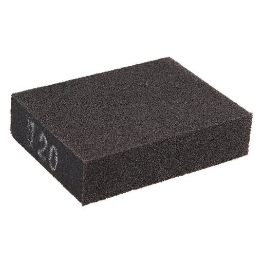 Csiszolószivacs, aljzat: rendkívül rugalmas szivacs, szemcse: 120, szemcsefajta: szilícium-karbid, kötőanyag: gyanta, felhasználás: lakkok köztes csiszolása, festékek, töltőanyagok és régi lakkok csiszolása, fa, fém, műanyag csiszolása, csiszolása bevonatok hornyokban és felületen , gipszkarton csiszolás,..., méretek: a terméknévben szerepel, csomagolás: papírhüvely eurolyukkal.