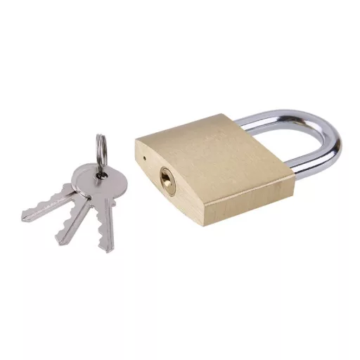 60 mm verstärkter Messingschlosskörper Messingeinsatz Schlüssel: 3 Gewicht: 440 g Verstärkter, gehärteter Stahlbügel für bessere Schnittfestigkeit.