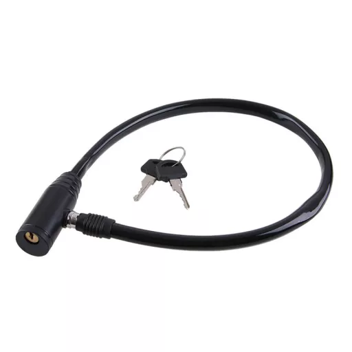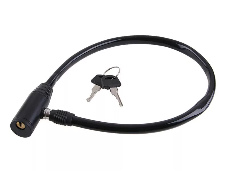 55 cm-es spirálkábel kiváló minőségű acélból PVC-ből készült védőburkolat Átmérő: 8 mm Kulcsok: 2 Súly: 100 g.