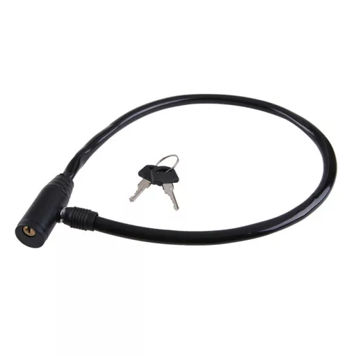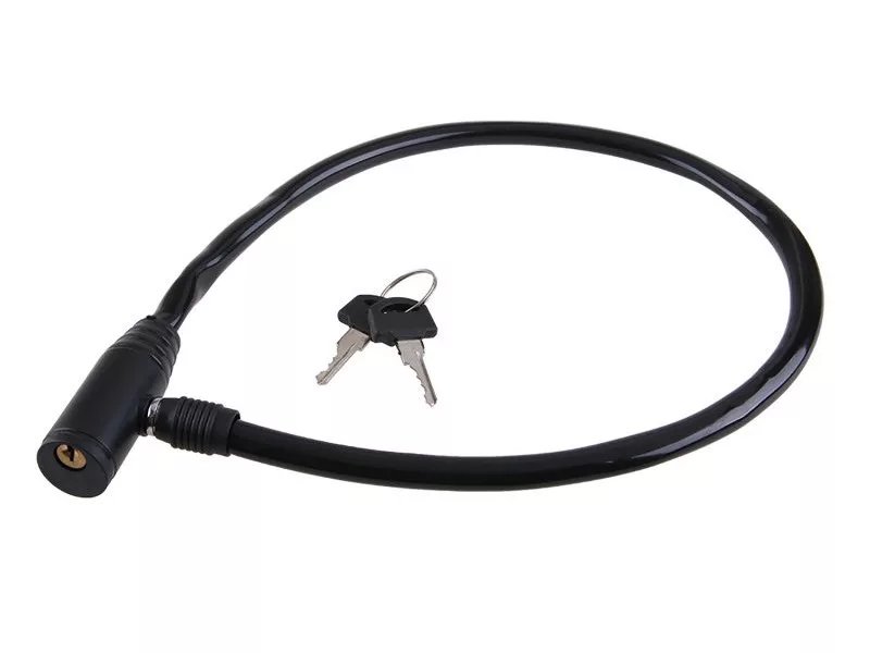 65 cm-es spirálkábel minőségi acélból Védőhüvely PVC-ből Átmérő: 8mm Kulcsok: 2 Súly: 115g.