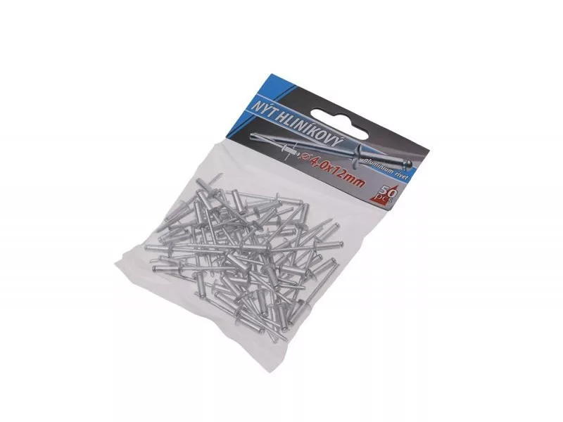 Klasszikus redőny-alumínium szegecsek, átmérő 4,0 mm, hossza 12 mm, 50 db-os kis kiszerelésben, kisfogyasztóknak megfelelő.