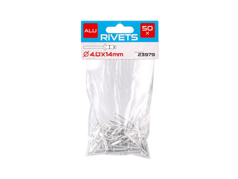 Klasszikus redőny alumínium szegecsek, átmérő 4,0 mm, hossza 14 mm, 50 darabos kis kiszerelésben, kis fogyasztók számára.