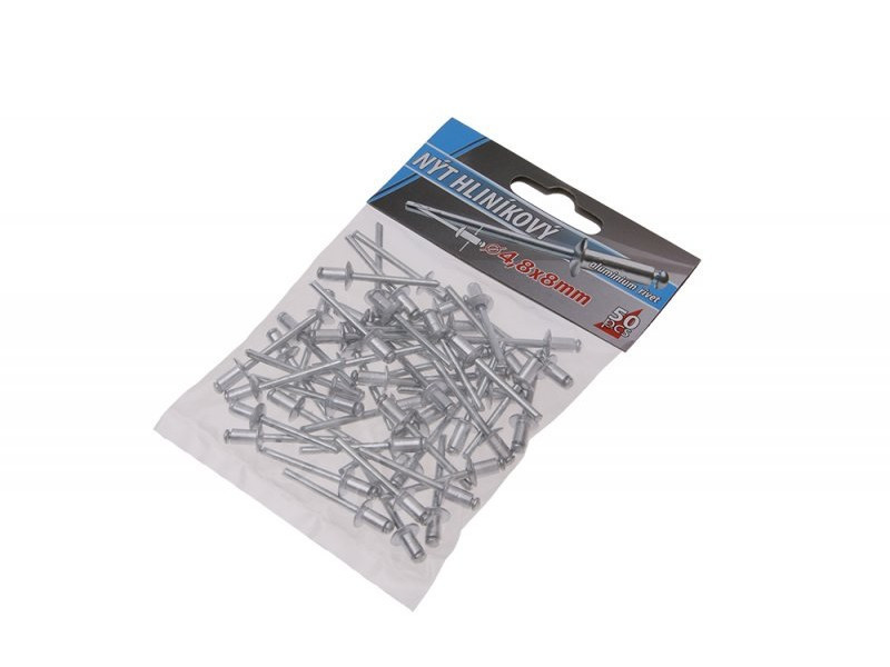 Klasszikus redőny alumínium szegecsek, átmérő 4,8 mm, hossza 8 mm, 50 db-os kis kiszerelésben, kisfogyasztóknak megfelelő.