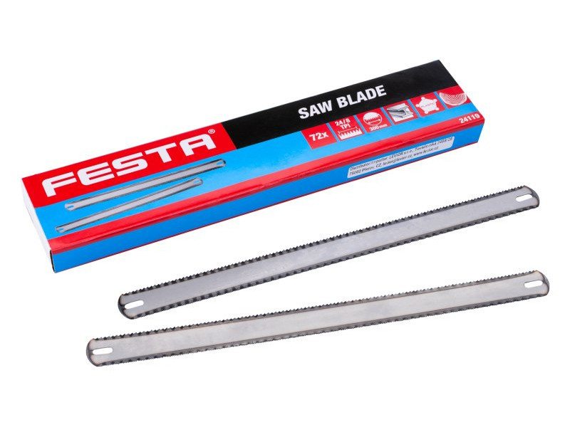 Anyaga: ötvözött acél, kétoldalas fogazás (egyik oldala fának/egyik oldala fémnek) TPI: 24, felhasználás: acél, színesfémek, műanyagok és fa vágására.
