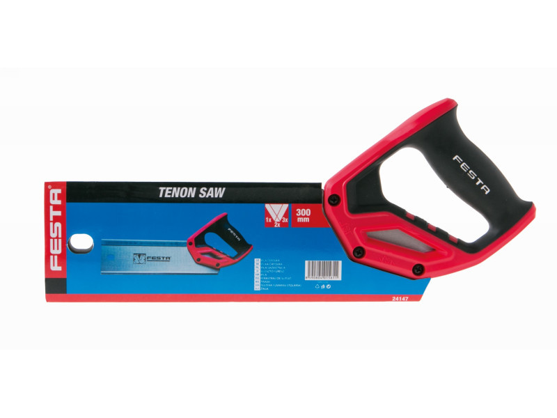 Munkafelület hossza: 300mm ABS nyél lágyított TPR gumival, nagyfrekvenciás edzett hármas csiszolt fogakkal, keménység: 47-52HRC, fogazás: 12TPI, a nyél 45 és 90 szögek jelölését teszi lehetővé.