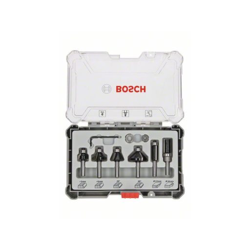 Das Set ist in drei Varianten erhältlich: Mit 6 mm, 8 mm oder ¼ Zoll Durchmesser Schaft, so dass es mit allen handgeführten Oberfräsen auf dem Markt verwendet werden kann