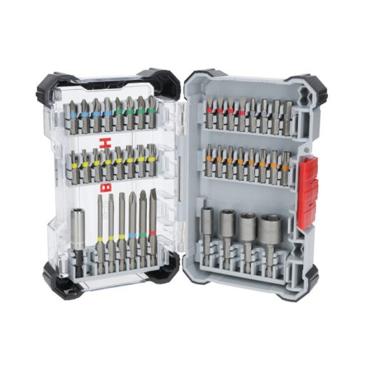 Das 43-teilige Extra Hard Set enthält alle normalen Schrauberbits und Steckschlüssel, die für Schraubarbeiten benötigt werden. Die Schrauberbits sind aus wärmebehandeltem S2, modifiziertem Stahl gefertigt, um Härte und Verschleißfestigkeit zu gewährleisten. Die Teile sind farbcodiert, so dass das gewünschte Zubehör leicht ausgewählt werden kann. Das Set ist in einem robusten Pick and Click Etui untergebracht, mit dem Sie Ihre eigene Werkzeugkiste erstellen können und die Schrauberbits gut organisiert und geschützt aufbewahren können.