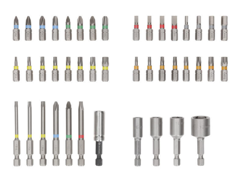 - Die in dem Set enthaltenen Schrauberbits sind farbcodiert, so dass das gewünschte Zubehör leicht ausgewählt werden kann