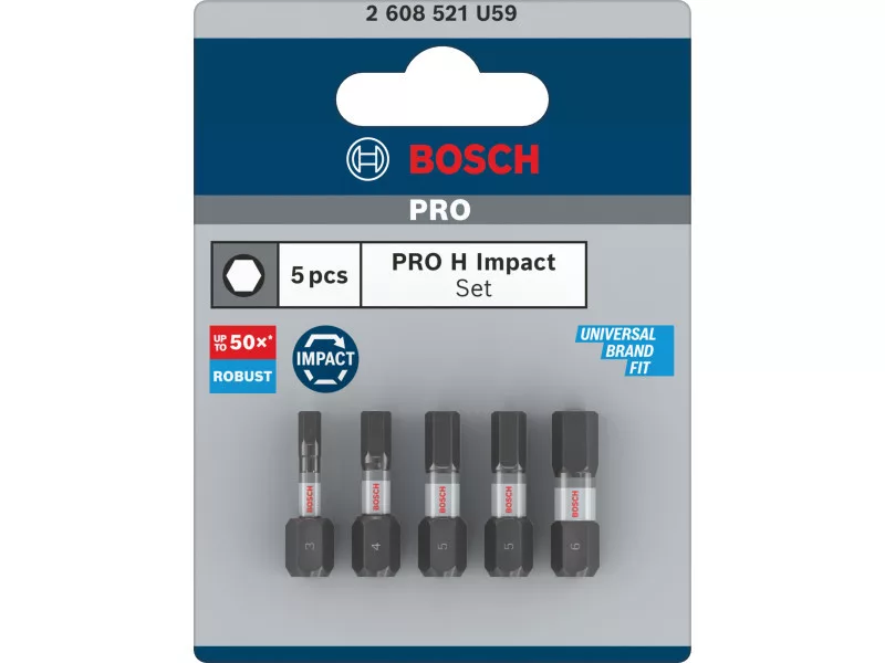 BOSCH PRO Impact Bit-Set 5-teilig 25 mm (H3/H4/H5x2/H6) 1/4" Hex BOSCH PRO Impact Bit-Set 5-teilig 25 mm (H3/H4/H5x2/H6) 1/4" Hex