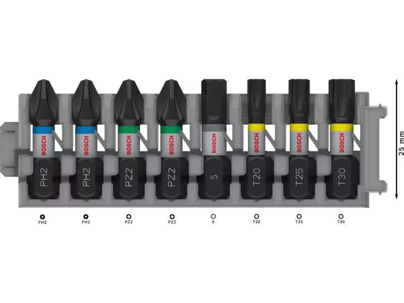 BOSCH PRO Impact Bit-Set 8-teilig 25m (PH2x2 / PZ2x2 / H5/T20/T25/T30x1 Stk) 1/4" Hex BOSCH PRO Impact Bit-Set 8-teilig 25m (PH2x2 / PZ2x2 / H5/T20/T25/T30x1 Stk) 1/4" Hex BOSCH PRO Impact Bit-Set 8-teilig 25m (PH2x2 / PZ2x2 / H5/T20/T25/T30x1 Stk) 1/4" Hex