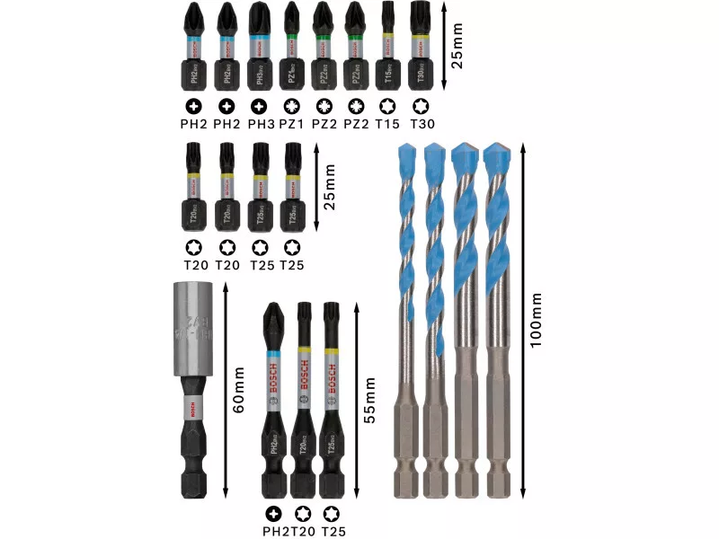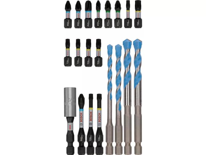 BOSCH PRO Impact-Bitsatz und Universalbohrer-Set 20-teilig 1/4 Hex BOSCH PRO Impact-Bitsatz und Universalbohrer-Set 20-teilig 1/4 Hex BOSCH PRO Impact-Bitsatz und Universalbohrer-Set 20-teilig 1/4 Hex