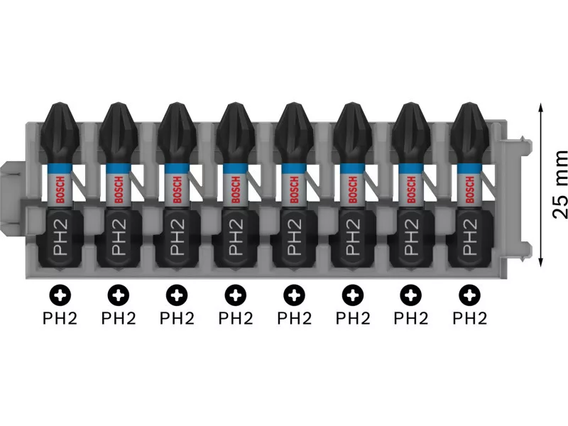 Der PRO Impact PH Schrauberbit ist eine ausgezeichnete Wahl für Mechaniker, die nach einem leistungsstarken, hochbelastbaren Schlagschrauberbit suchen. Die Bits werden aus wärmebehandeltem, modifiziertem Stahl für herausragende Festigkeit und Widerstandsfähigkeit gegen hohes Drehmoment hergestellt. Ihre Torsionszone absorbiert die durch das Drehmoment an der Bit-Spitze erzeugte Spannung, um sicherzustellen, dass sie nicht brechen. Sie sind mit Ringen für die Farbcodierung versehen, die den Kopftyp anzeigen, sowie mit Lasemarkierungen, die bei der Auswahl der benötigten Größe helfen.