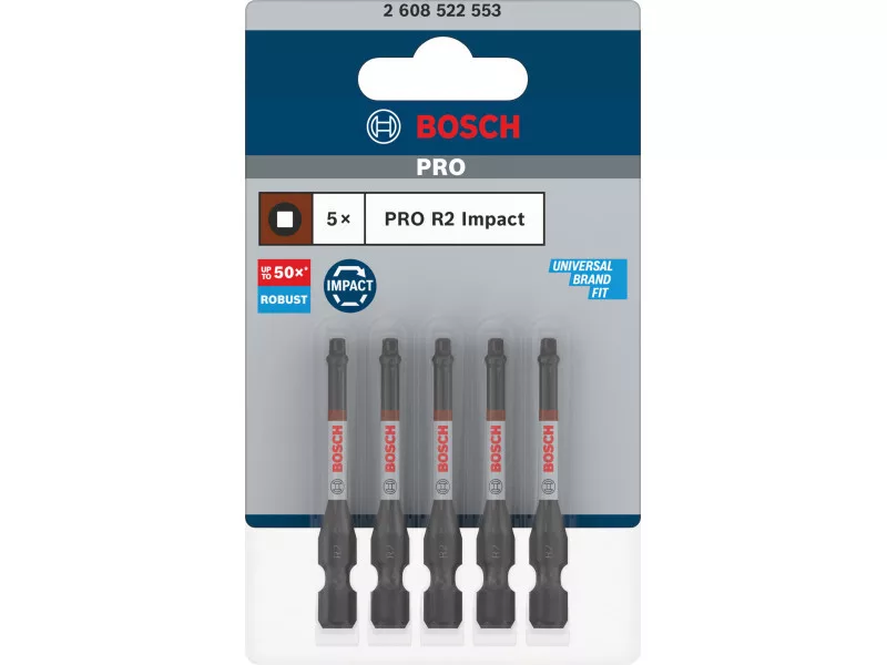 BOSCH PRO Impact Schrauberbit R2 x 55 mm 1/4" Hex Robertson (5 Stück)