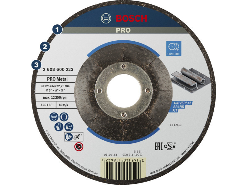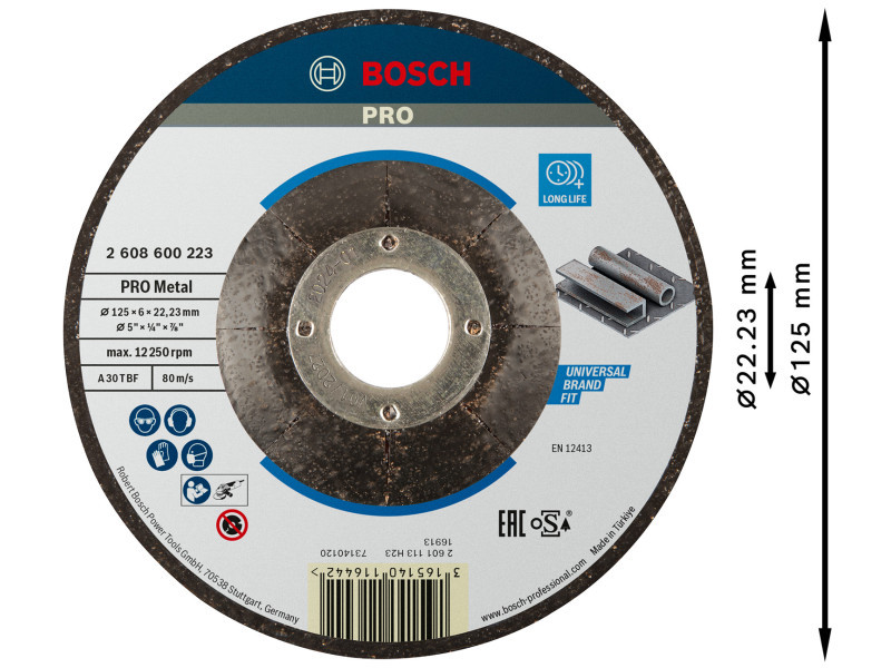 BOSCH PRO Reinigungsscheibe für Metall 125 x 6,0 x 22,2 mm A 30 T BF (oSa) BOSCH PRO Reinigungsscheibe für Metall 125 x 6,0 x 22,2 mm A 30 T BF (oSa) BOSCH PRO Reinigungsscheibe für Metall 125 x 6,0 x 22,2 mm A 30 T BF (oSa)