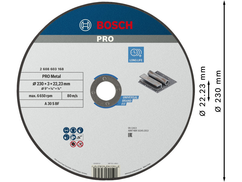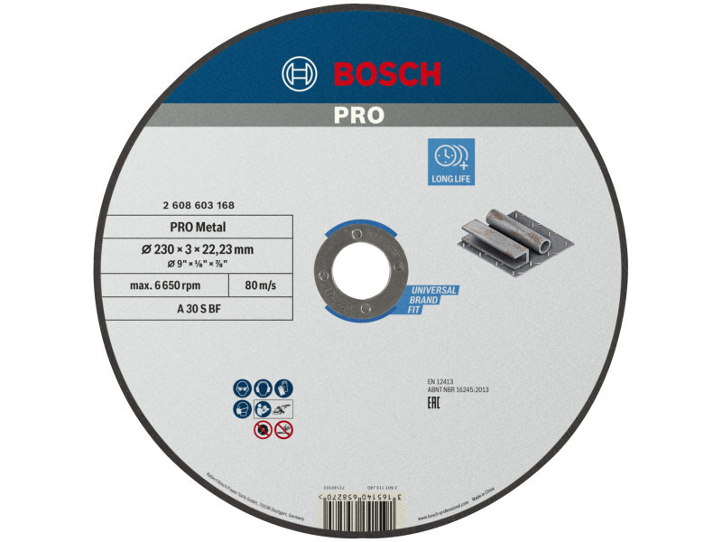 Die langlebige PRO Metal Schneidscheibe wird mit hochwertigen Aluminiumoxid-Körnern hergestellt, um effektiv zu schneiden. Wir haben die Körner mit funktionalen Füllstoffen kombiniert und sie in ein Phenolharz-Matrix eingebettet, um Festigkeit und Hitzebeständigkeit zu gewährleisten. Die Schneidscheibe wurde mit hochwertigem Fiberglasnetz verstärkt, um eine sicherere und stabilere Leistung zu gewährleisten.