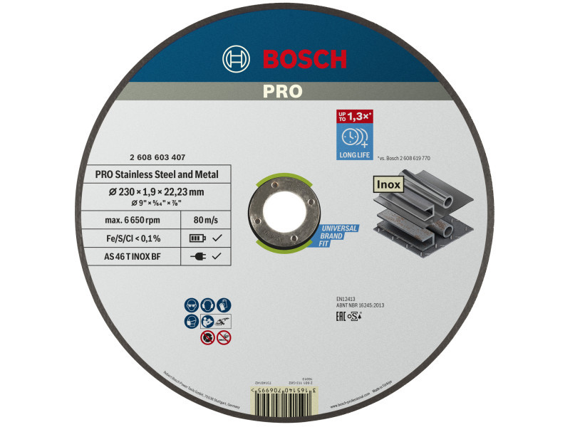 Die PRO Edelstahl- und Metallbinderscheibe besteht aus einer hochwertigen Aluminiumoxidkörnung für Stärke und Langlebigkeit. Die Schleifkörnungen wurden mit funktionellen Füllstoffen kombiniert und in Phenolharz eingebettet, um die Festigkeit zu erhöhen. Die Trennscheibe wurde mit einem hochwertigen Glasfasernetz verstärkt, um eine sicherere und stabilere Leistung zu gewährleisten. Plus, wir haben es metallfrei gemacht. Das bedeutet, dass Sie sich keine Sorgen über Rost auf Ihrem Werkstück machen müssen, wenn Sie nur Edelstahl schneiden.