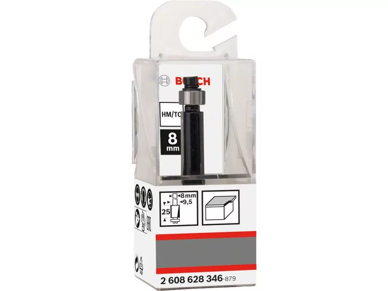 Der Fräser eignet sich zum Fräsen von vorstehenden Materialien wie Sperrholz oder Furnierplatten und kann auch für Massivholz und Holzverbundstoffe verwendet werden.