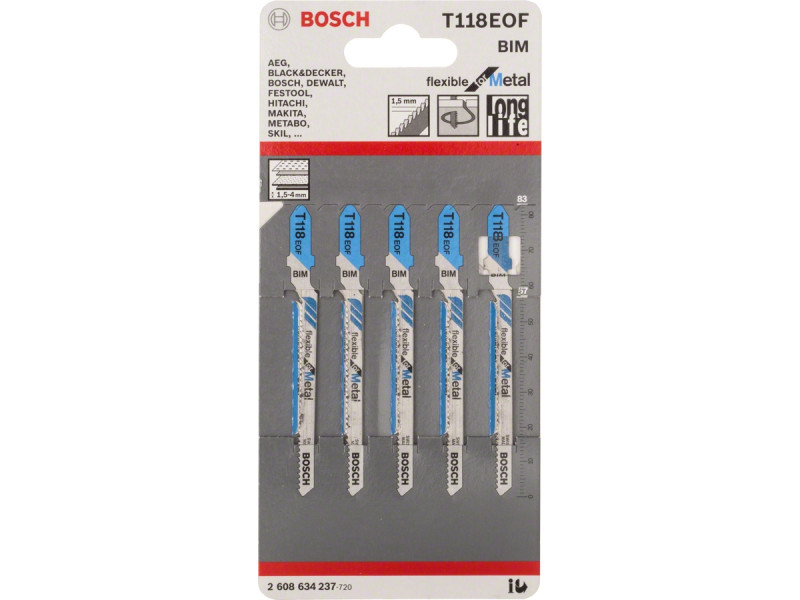 Das Sägeblatt ist mit seiner dichten (1,5 mm) Zahnteilung für das Schneiden von dünnen Metallplatten mit einer Dicke von 1,5-4 mm geeignet