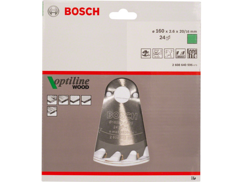 Je nach Zahnzahl können mit den Optiline Wood Kreissägeblättern unterschiedliche Qualitäten erreicht werden, die mit einer variablen Freiwinkel (ATB) Zahngeometrie hergestellt werden: Bei hoher Zahnzahl schneidet das Sägeblatt sauber, während eine geringe Zahnzahl einen sicheren und effizienten Schnitt gewährleistet