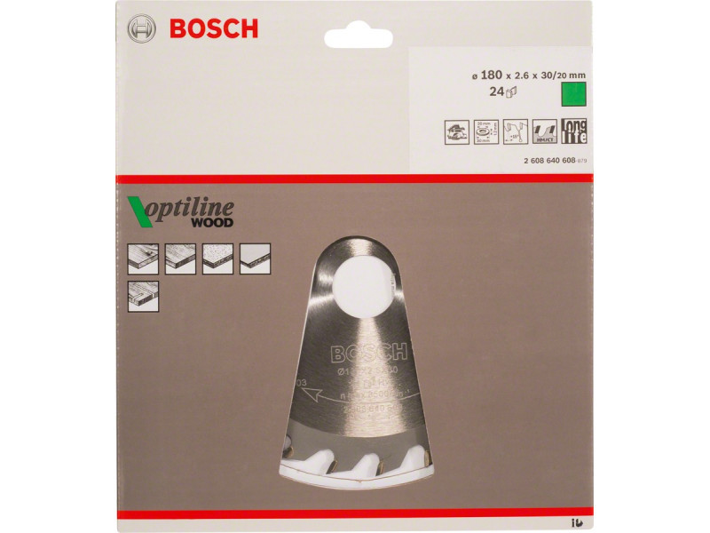 Je nach Anzahl der Zähne kann eine unterschiedliche Qualität mit den Optiline Wood Kreissägeblättern erreicht werden, die mit einer Wechselzahn-Geometrie (ATB) gefertigt sind: Bei einer hohen Zahnanzahl schneidet das Sägeblatt sauber, während eine niedrigere Zahnanzahl einen sicheren und effizienten Schnitt gewährleistet