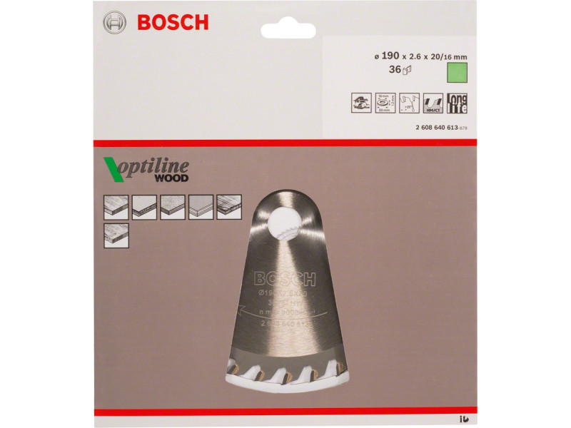 BOSCH Sägeblatt für Holz 190 x 20/16 x 2,6 mm / 36T Optiline Wood ATB