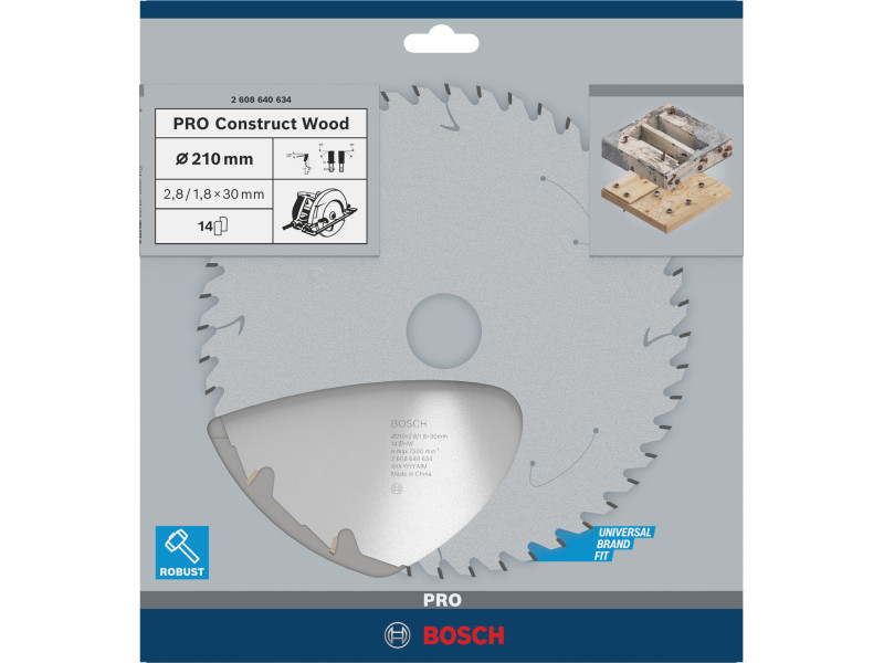 Die herausragende Stabilität, Präzision und Langlebigkeit des PRO Construct Wood Kreissägeblatts sind auf den gehärteten Stahlkörper und die hochwertige Hartmetall-Verzahnung zurückzuführen. Dank seiner Zahngeometrie ist das Sägeblatt stark genug, um Nägel und Betonreste zu durchtrennen. Das Sägeblatt verfügt auch über Dehnungsfugen zur Vermeidung von Wärmestau.