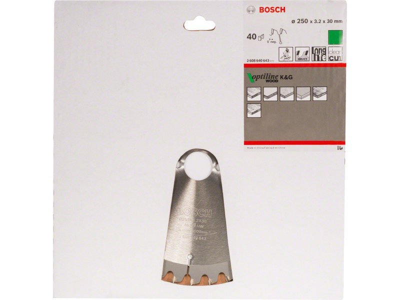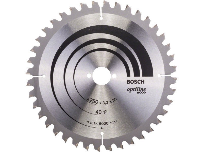 BOSCH Sägeblatt für Holz 250 x 30 x 3,2 mm / 40T Optiline Wood ATB / N