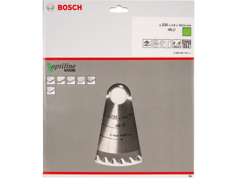 BOSCH Sägeblatt für Holz 235 x 30/25 x 2,8 mm / 48T Optiline Wood ATB