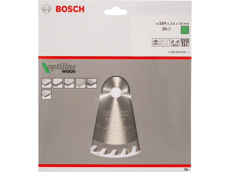 Je nach Anzahl der Zähne können unterschiedliche Qualitäten mit den Optiline Wood Kreissägeblättern erzielt werden, die mit einer variablen Schrägband- (ATB) Zahngeometrie hergestellt werden: Bei einer hohen Zahnzahl schneidet das Sägeblatt sauber, während eine geringe Zahnzahl einen sicheren und effizienten Schnitt bietet