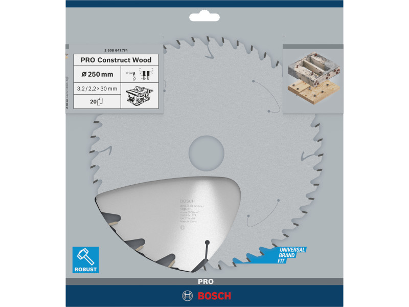 Die herausragende Stabilität, Präzision und Langlebigkeit des PRO Construct Wood Kreissägeblatts verdankt es seinem gehärteten Stahlgrundkörper und der hochwertigen Hartmetallverzahnung. Durch die Geometrie der Zähne ist das Sägeblatt stark genug, um Nägel und Betonreste zu schneiden. Das Sägeblatt hat auch Ausdehnungsschlitze zur Vermeidung von Wärmestau.