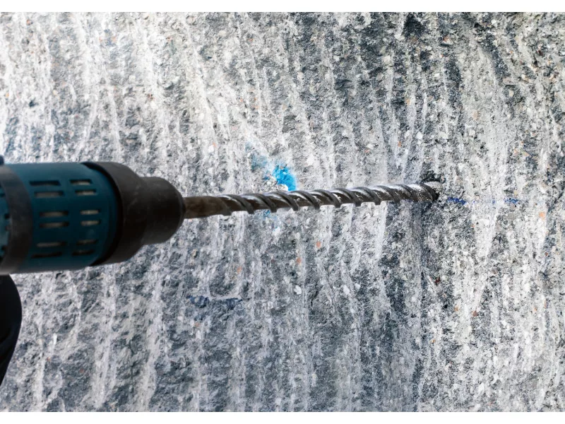 • Der 4-Schneidenkopf bleibt nicht hängen und bricht nicht, wenn er auf Bewehrungsstahl trifft