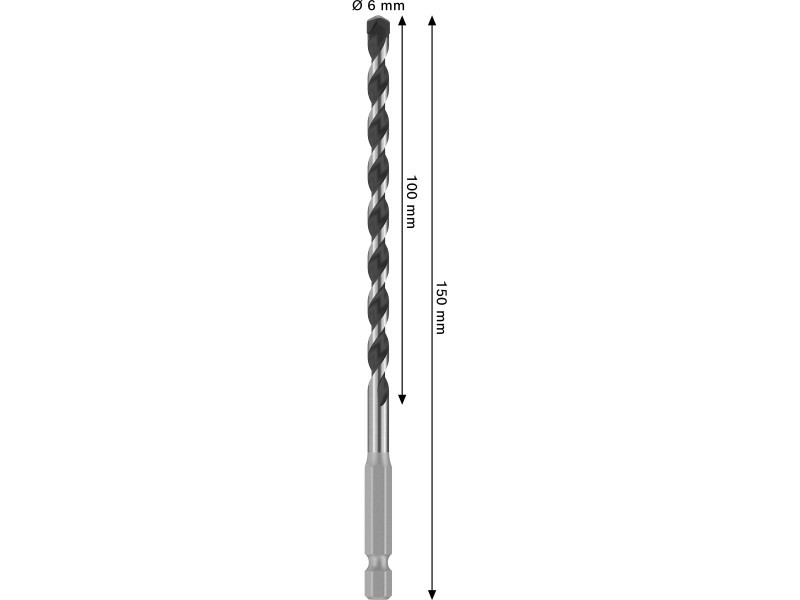 - Sechskantschaft für starke Verbindung und maximale Drehmomentübertragung, geeignet für Dreibackenfutter und ¼"-Sechskant-Innenhalter.