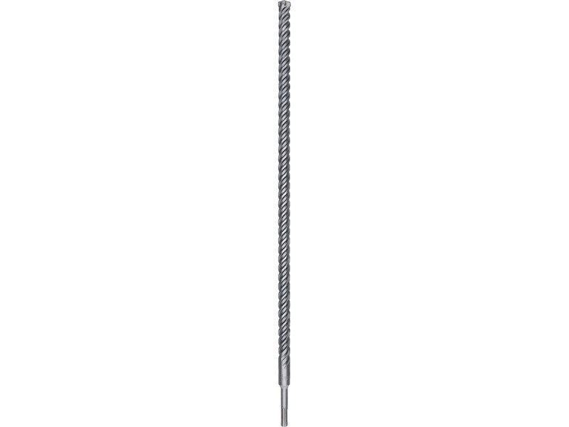 Der "schräg" Kopf mit den großformatigen und kurzen Staubabfuhrkanälen des 4-Kant-Designs führt zu einer schnellen Staubentfernung, so dass der Bohrer schnell und mit geringem Verschleiß durch Beton und Eisen schneidet
