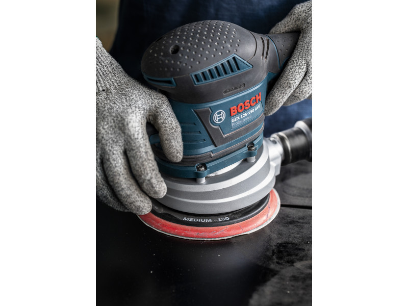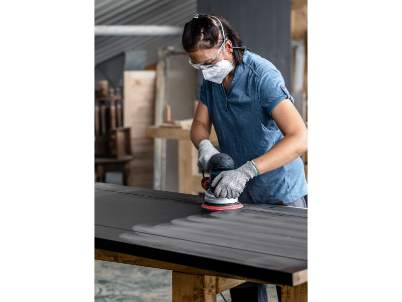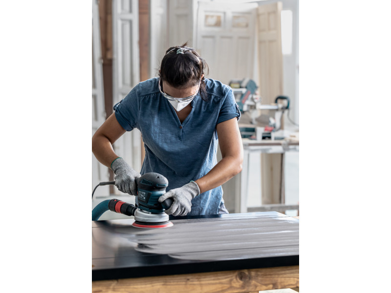 Hocheffiziente Staubabsaugung mit Bosch Particle Control. Der Staub wird von der geschliffenen Oberfläche in die Staubabsauganlage geleitet, was die Luftqualität, Geschwindigkeit und Langlebigkeit verbessert.