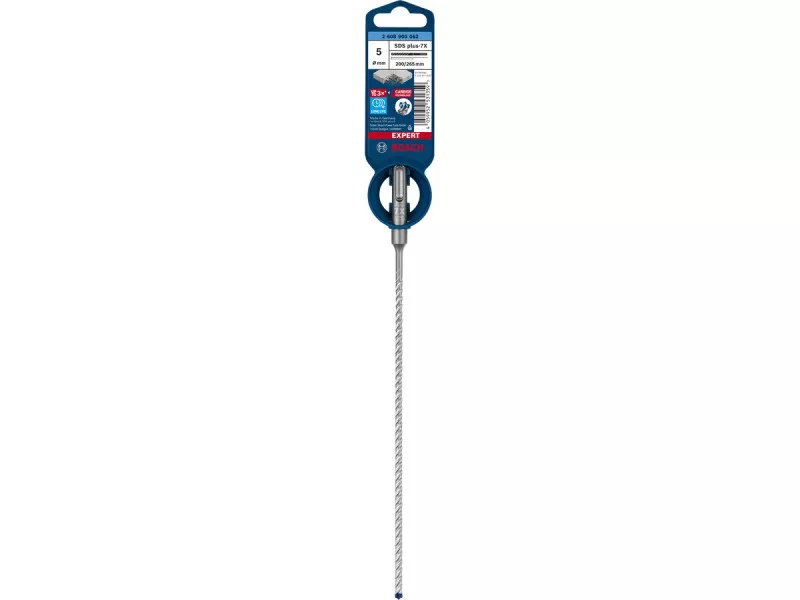 A Bosch Carbide Technology és a tömör keményfém fej jóvoltából az EXPERT SDS plus-7X típus sokkal tovább bírja, mint a hagyományos kalapácsfúrók