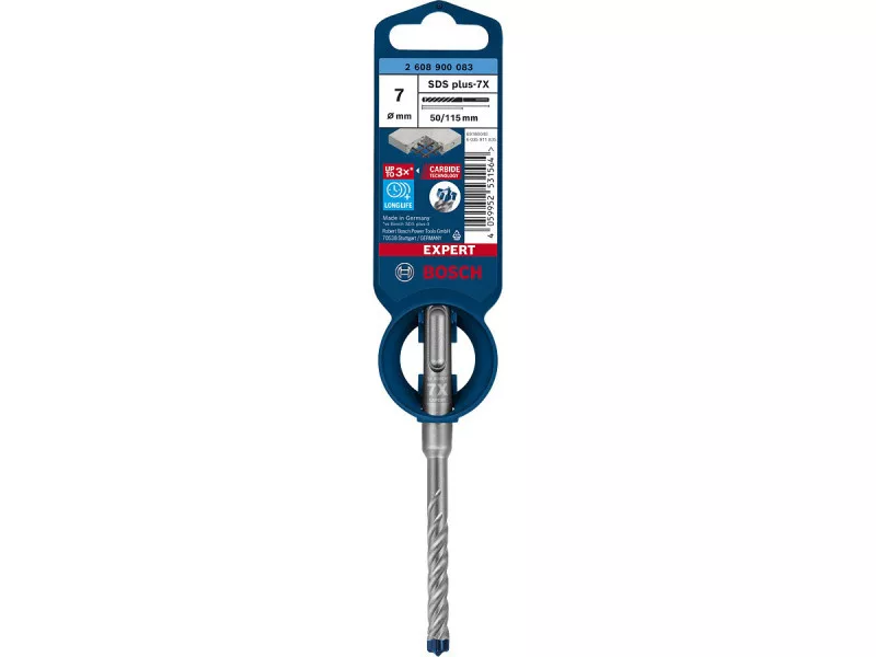 Dank der Bosch Carbide Technology und der soliden Hartmetallspitze hält das Modell EXPERT SDS plus-7X viel länger als traditionelle Hammerbohrer