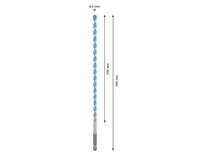 Dieser äußerst vielseitige Bohrer kann dank seiner spitzen Spitze und fortschrittlichen geometrischen Konstruktion präzise und ohne Verrutschen in harte Materialien wie Granit bohren