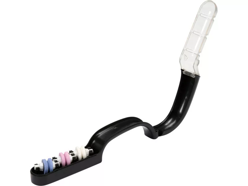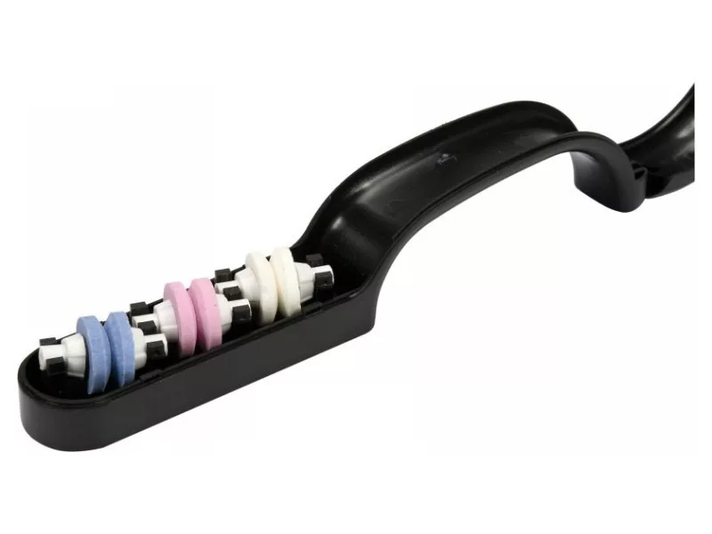 - sharpener discs of different hardness made of ceramic material, chromium corundum and aluminum oxide