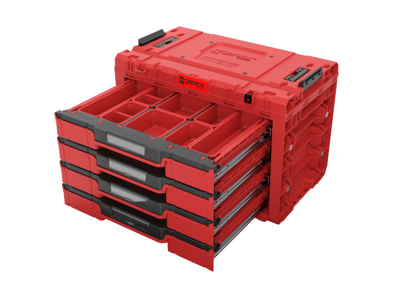 QBRICK SYSTEM PRIME Werkzeugkasten mit 4 Schubladen Red Ultra HD